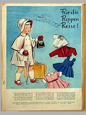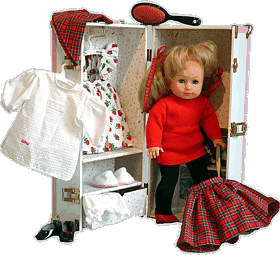 Bestandsliste Für Puppenfreunde, denen die Zeit fürs Selbernähen fehlt, bringt die Puppenindustrie nicht nur Puppenkonfektion heraus, sondern ab und zu sogar eine Puppe mit eigenem Trousseau, wie z.B. 1994 die „Kleine Weltenbummlerin“. |