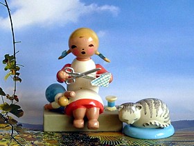 Ja, auch das gibt es und es ist ein ganz besonders reizender Anblick! Zwei Beispiele seien Ihnen vorgeführt: die kleine hölzerne „Schneiderin“ der erzgebirgischen Traditionsfirma