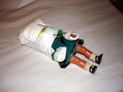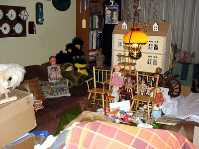 Ich habe so gepackt, dass ich gleich die Puppen mit dem dazu passendem Zubehör in eine Kiste legte und eine Liste dazu anfertigte. Dann noch die zarten Celluloid-Hände einzeln mit Seidenpapier umwickeln, damit auch wirklich nichts passiert. Anschließend die ganze Puppe in einen Bogen Seidenpapier einpacken, das Ganze einbetten in 1000 gute Wünsche für eine angenehme Reise und ab in die Kiste ... ... Naja, bei Bedarf auch noch etwas Luftpolsterfolie dazu. |
