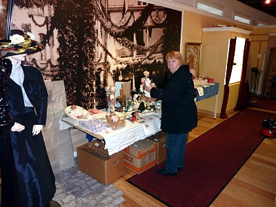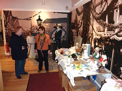 Nachdem uns Herr Gehlen noch einen weiteren Tisch aufgebaut hatte, konnten wir schließlich alle Puppen aufstellen bzw. setzen. |
