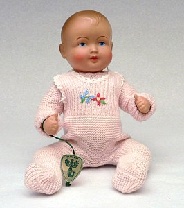 , eine Rasselpuppe, wie es sie heute wieder in der Klassik Kollektion gibt und Inge und Hans. Wer mich kennt, der sagt ganz klar, der Hans ist aber nicht von dir. Stimmt, er ist die Leihgabe einer anderen Sammlerin über die ich mich sehr freue und er vervollständigt die Schildkrötkinder.