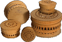 Erwähnenswert ist vielleicht noch das filigrane Holzdöschen aus Berchtesgaden. Diese gedrechselten Dosen gibt es seit Beginn des 20sten Jahrunderts in verschiedenen Größen. Die in meiner Stube hat einen Durchmesser von nur 4 Zentimetern. |