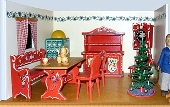Es war wirklich sehr spartanisch eingerichtet und ich stellte erst einmal hinein, was so alles meine Schatz- und Grabbelkisten auf die Schnelle hergaben. Damals noch ganz ohne Konzept. Die nachfolgenden Bilder zeigen jeweils auf der linken Seite den Raum, wie ich ihn von Jutta kannte und rechts, wie ich ihn erst einmal auf die Schnelle ausgestattet habe. |