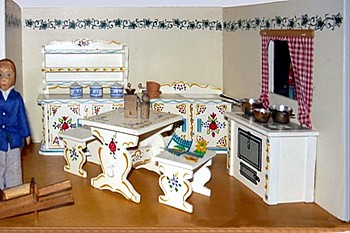 Nach dem schmerzlichen Tod der lieben Freundin brauchte ich eine Weile bevor ich mich wieder an das Haus machte. Erst am 10. Januar 2015 - einen Tag nach der Trauerfeier für Jutta - holte ich das Haus auf unseren Arbeitstisch - der hauptamtlich unser Küchentisch ist. |