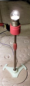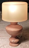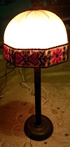 Ich habe stundenlang Kataloge geblättert. Auch sie wird viel bei Ebay angeboten, mal mit heilem, mal mit abge- brochenem Fuß, aber überwiegend deutlich preiswerter als die erste Lampe. Sie ist aus Kunststoff, das Kabel ist mit Papier isoliert, was an die Lampen aus der DDR erinnert. So wird sie sicherlich daher stammen. Aber ich weiß gar nichts über den Hersteller. |
