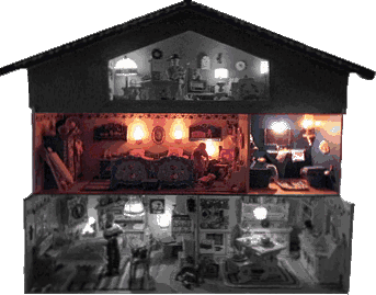 Das Obergeschoss Drei weitere Löcher kamen in die Rückwand und schon konnte ich die Lampen mit Mini-Dots ankleben. Es hat eben auch seine Vorteile einmal nicht lange basteln zu müssen. |
