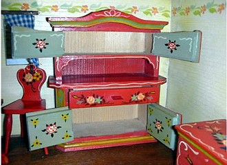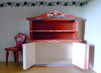 Wer sich diesen Vergleich ansieht, links Geschirrschrank 30er Jahre, rechts Geschirrschrank 70er Jahre, der kann nicht umhin, voller Sehnsucht an die „Gute alte Zeit“ zu denken. Aber wundern wird es niemanden, dass man mit so viel liebevoller Bemalung nicht auf einen grünen Zweig kommen kann. |