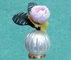 Diese Miniaturen sind natürlich recht einfach, doch sind sie preiswert zu basteln, machen sich in den kleinen Stuben gut und bringen Leben ins Haus. Auch sehr einfach und doch dekorativ und elegant ist die Perlenvase mit der einen Seidenrose und den Porzellan- blättern. |