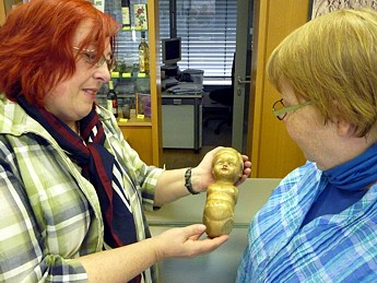 Als ich mich nach drei Stunden von Frau Porzenheim verabschieden wollte, zeigte sie mir eine Besonderheit, die sie gerade erst für die Ausstellung erhalten hatte. Am nächsten Tag wollte sie sie in die Ausstellung integrieren. Sie war berechtigterweise sehr stolz darauf, dass sie diese Urform in der Ausstellung präsentieren konnte. Die Urform vergrößern: |