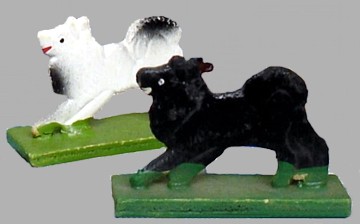 Roßwein- figuren Mein Wissen über diese Figuren, die ich schon viele Jahre so ganz nebenbei sammel, habe ich aus dem Sammlerkatalog von Stefan Krause. Der „Schwarze Großspitz“ war im südlichen Deutschland ein beliebter Hund im Weinbau. Der „Weiße Großspitz“ galt als Statussymbol beim Großbürgertum und Adel. So ist anzunehmen, dass sie eigentlich nicht zusammen in einem Haus gehalten wurden. Aber in dieser Familie ist es nun einmal so. |