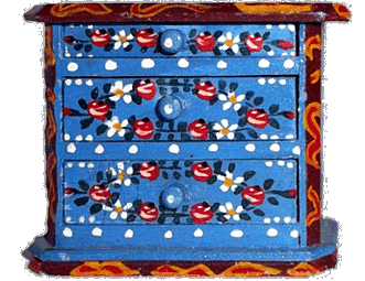 Trautes Heim Dort sind auch Tisch und Stühle, aber ich denke beides eher für die kleine Stube. Aus der Beschreibung von Bad Mergentheim geht hervor, dass die ursprüngliche Besitzerin sie im Winter 1930/1931 geschenkt bekam. Jetzt habe ich also auch so eine seltene Kommode in meiner großen Stube. Sie ist dort eine Zierde und mein Stolz. |