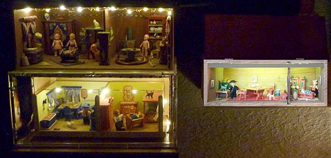 Die Brettchen- oder Flachfiguren haben es mir schon immer angetan. In dieser Stube sind vier davon eingezogen. Auf der rechten hinteren Ecke schleicht eine