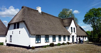 Das Museum Oldemorstoft ist auf einem alten Bauernhof mit wunderschönen weißen reetgedeckten Gebäuden untergebracht. Das Gehöft geht zurück auf das Jahr 1472. Das Museumscafe und die Räume für die Sonderausstel- lungen sind im ehemaligen Wohngebäude untergebracht. Es diente früher als Gasthof und ... es liegt beinahe in der Mitte des Ochsenweges, der ja nur wenige Schritte von meinem Zuhause beginnt.  |
