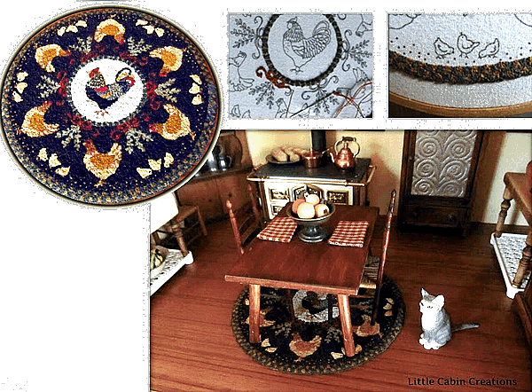 Aus Missouri erhielt ich die Fotos von Sherri, die mit viel Sorgfalt und noch mehr Geduld einen runden Teppich für ihre Küche im „Triple Decker“ in Knotentechnik stickte. Ich beneide sie um diese wunderschöne Puppenstube - aus Platzmangel nach oben - drei Stuben übereinander - die ihr Mann für sie gebaut hat. Aber noch mehr bewundere ihre Arbeit. Sherri hat mir einen Link geschickt, wo man die Vorlagen, samt Material online kaufen kann. Wer also ein geduldiger Mensch ist, hier ist ein Link. Man kann alles was nötig ist für solche tollen Arbeiten kaufen. |