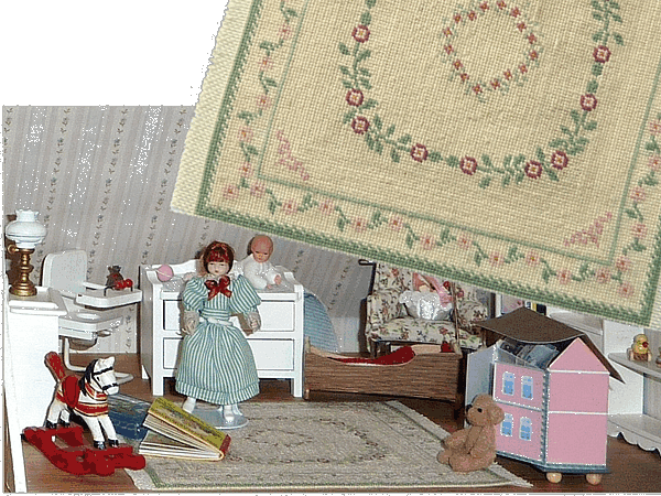 Ich habe vor vielen Jahren einmal einen Gobelin-Teppich aus einem Faden gestickt. Er war für das Kinderzimmer im DelPrado Sammelpuppenhaus. Damals waren meine Augen noch schärfer und die Hände beweglicher. Trotzdem habe ich gefühlte 10 Jahre daran gearbeitet. |