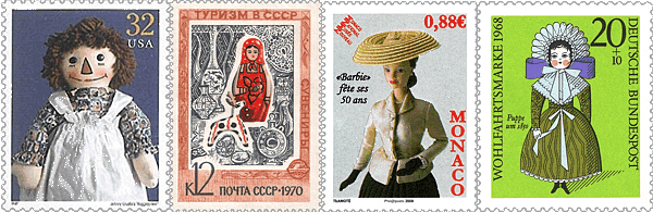 Kein Wunder also, dass ich gleich begeistert war, als ich auf dem dänischen Puppenblog Dukke - & Legetøjsdrømme eine Abbildung dieser schönen Briefmarken sah. Sie stammen aus Kanada und ich konnte nicht widerstehen. Meine Freundin Sherri aus Missouri hat tatsächlich diese Marken für uns auf der großen amerikanischen Auktionsplattform entdeckt und sofort zwei Sätze gekauft. Wir wollen die Briefmarken als Bilder in unsere Puppenstuben hängen. Ihr Mann hat versprochen, dass er Bilderrahmen dafür baut. Wenn ich meine habe, werde ich Ihnen hier ein Foto zeigen. |