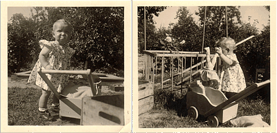 Die Freundin meiner Kindheit heißt Bärbel. Von ihr möchte ich Ihnen heute erzählen. Wer genau hinschaut, der sieht Bärbel oben auf meinem Schoß - während ich auf dem Schoß meiner Oma sitze. |