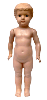 Bei mir ist diese Puppe männlich, ich habe sie aber auch schon in meist sehr weiten Kleidern gesehen. Obwohl man bis in die 20er Jahre hinein auch kleinen Jungen Röcke oder Kleider angezogen hat, gehe ich davon aus, dass es sich bei diesen Puppen dann um Puppenmädchen gehandelt hat. Das sorgfältig bemalte Gesicht und die Frisur überlassen die Geschlechtszuordnung der Besitzerin. Eindeutig ein großer Vorteil. So wurden Träume wirklich wahr.