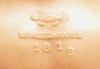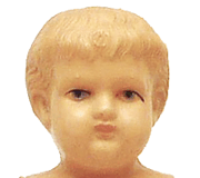 Er wurde ebenfalls sehr pfleglich behandelt. Haare und Ohren sind wie beim großen Bruder wunderbar ausgeprägt. Auch seine Gesichtsbemalung ist sehr gut erhalten. Doch fehlt es an der Sorgfalt. Lippenfarbe und die der Lichtpunkte sind mehr ins rosa gehalten. Der Lichtpunkt im rechten Auge fehlt, wurde vergessen (?), doch die kleinen Nasenlöcher sind beide rosa angedeutet.